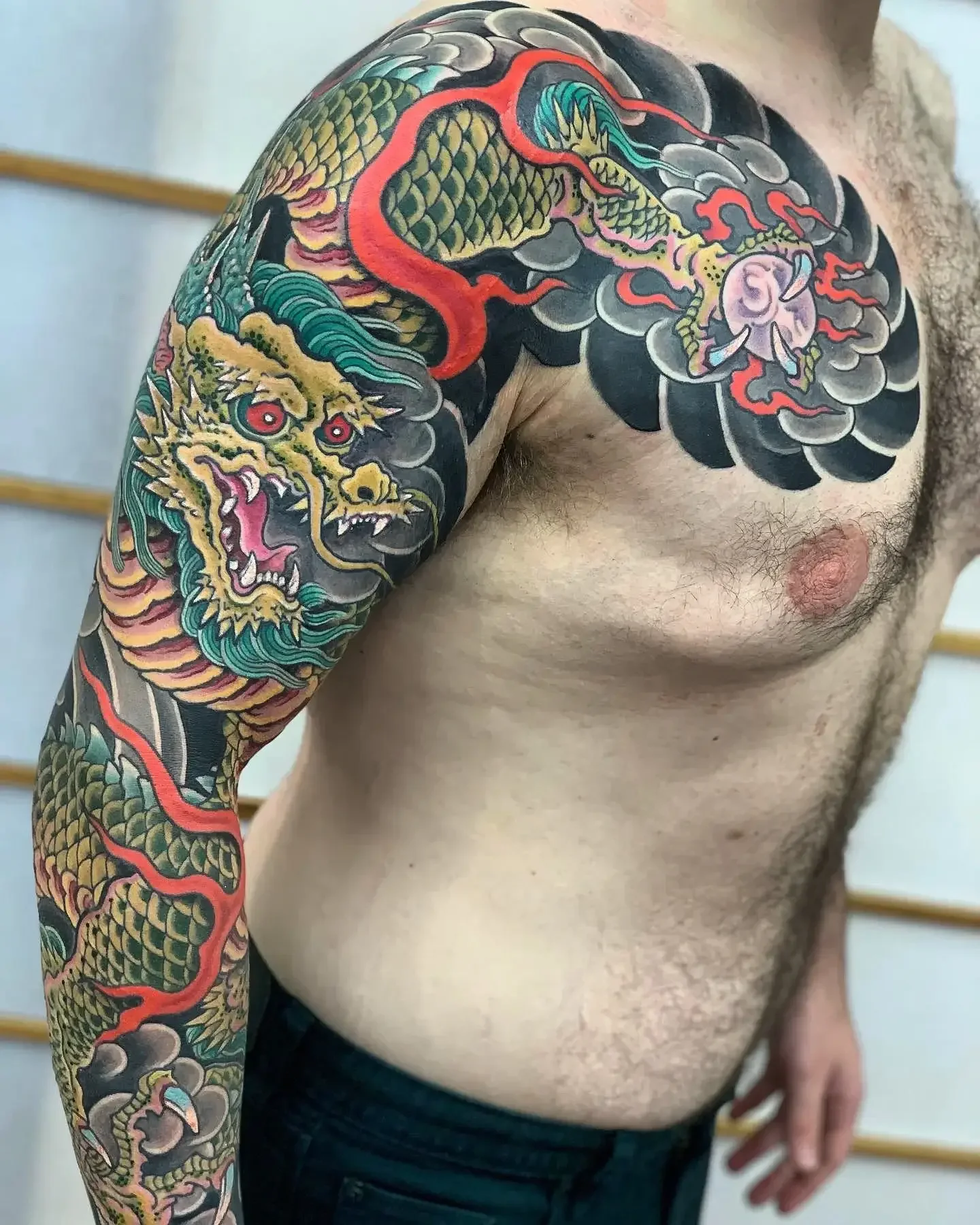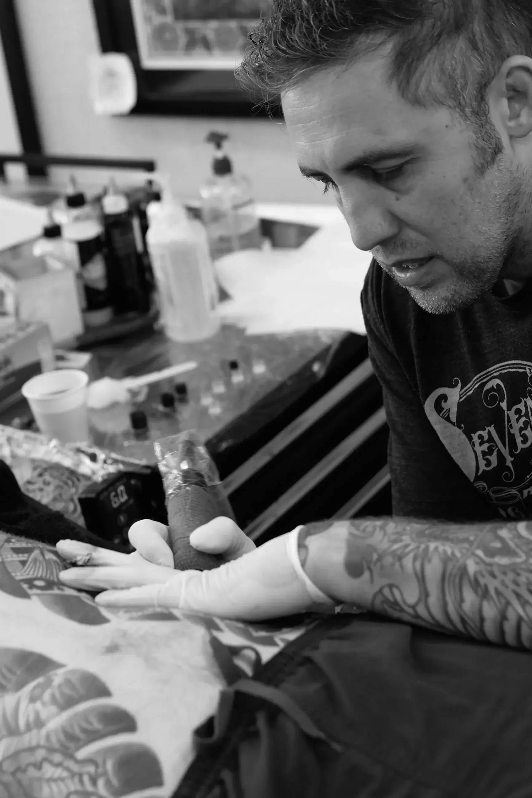Daryl began his tattooing career in Maryland, USA, in 2008, working his way up through street shops along both the East and West Coasts. In 2013, Daryl hopped across the pond and became “Daz”. Bringing with him the bold, vibrant energy of North American tattooing, Daryl specializes in large-scale Japanese tattoos.